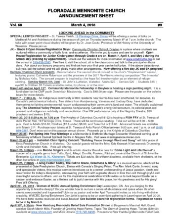 Mar. 4, 2018 Announcement Sheet